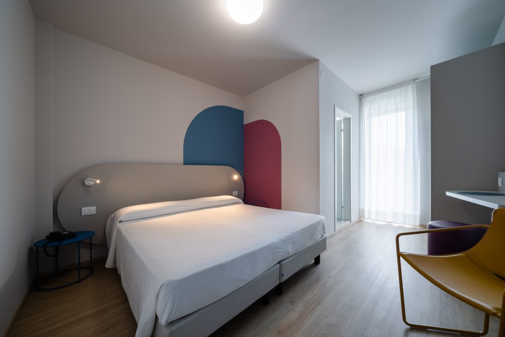 Camera insonorizzata e ristrutturata con elementi di design, ideale per un soggiorno elegante e rilassante. Balcone e bagno moderno completano il piacere di sentirsi davvero a proprio agio.
