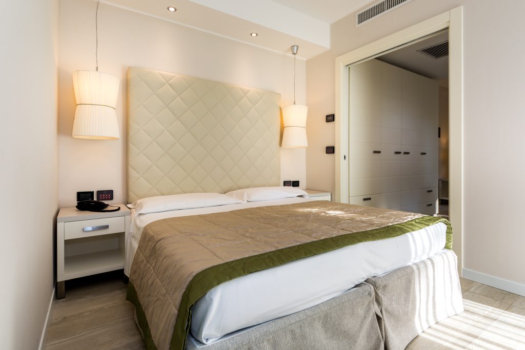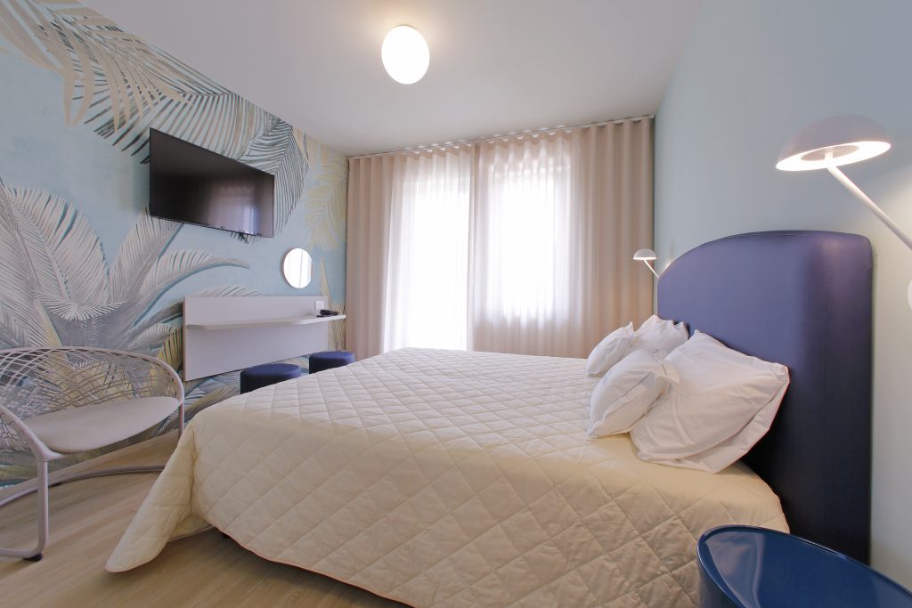 Camera dallo stile moderno e funzionale, perfetta per coppie o piccole famiglie. Il balcone con affaccio sulla piscina regala un’atmosfera rilassante per godersi la vacanza con calma.